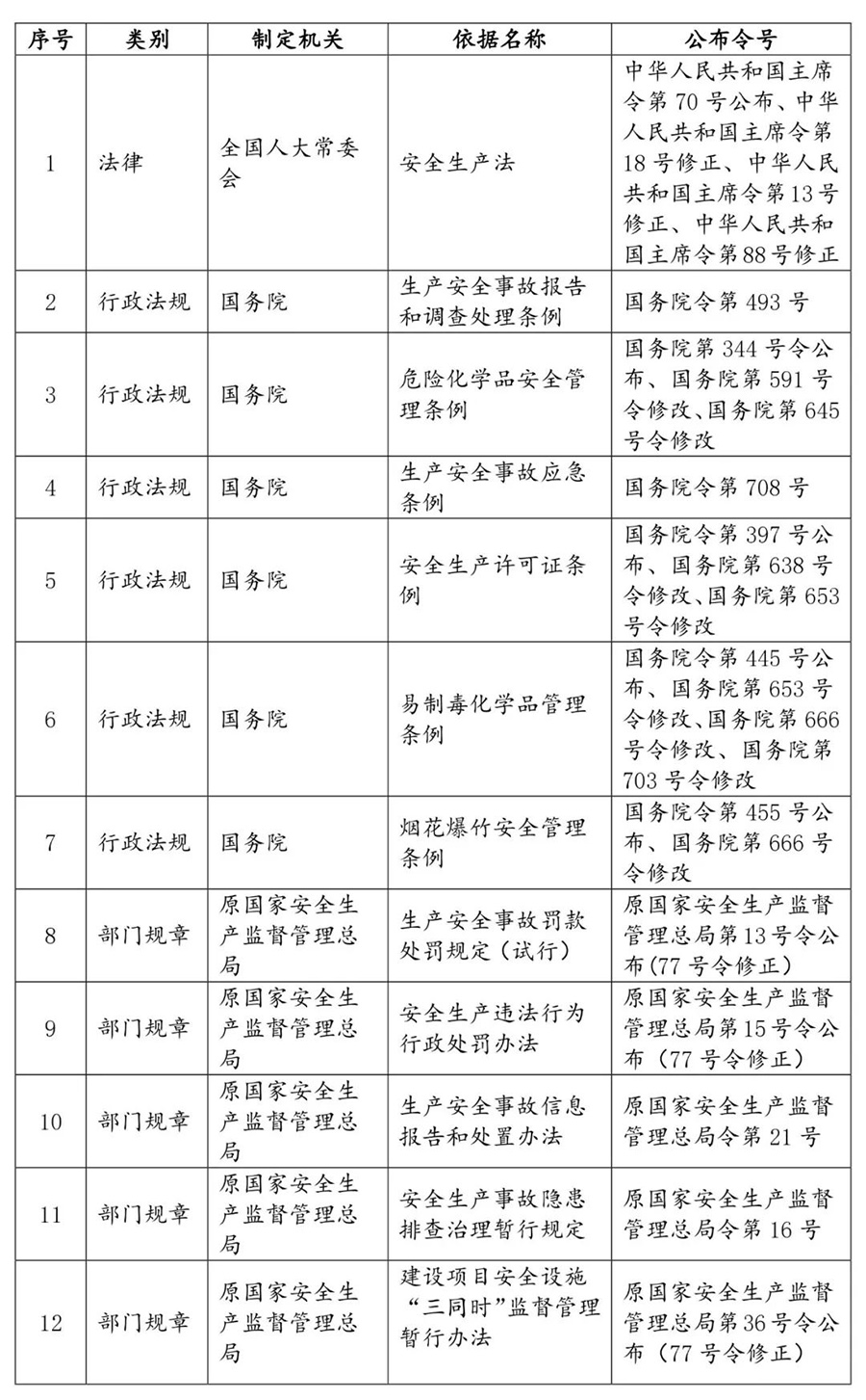 Mainly studying a total of 36 effective laws, administrative regulations, and departmental rules related to administrative penalties for safety production in the current field of safety production. Please refer to the table below for details: