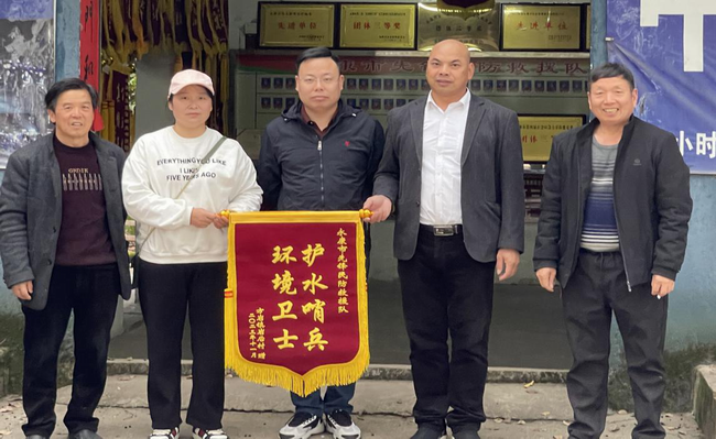 事后,方巖鎮(zhèn)巖后村書(shū)記應(yīng)杰平和村民代表,登門(mén)感謝二支隊(duì)伍,并送上“護(hù)水哨兵、環(huán)境衛(wèi)士”大紅錦旗。