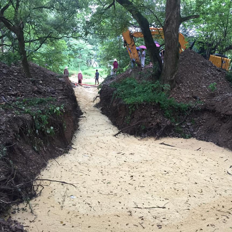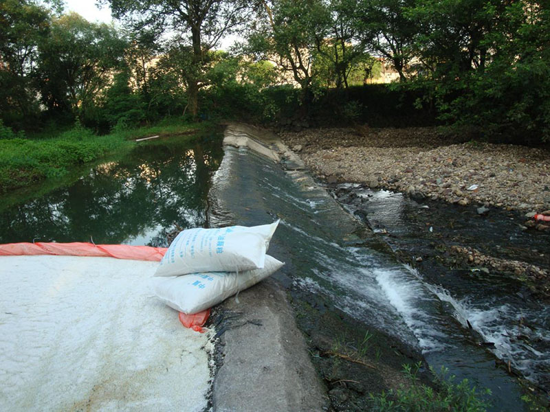 3. Excavate a drainage channel and a sewage storage tank near the river beach, drain the adsorbent into the tank, and then salvage it, so as to prevent and resolve the risk of rainstorm and mountain torrents, and oil pollution discharge downstream.